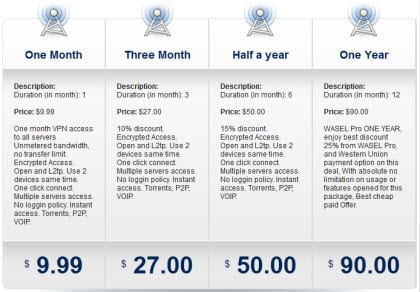 帐户范围从每月 10 GB 一直到每月传输 120 GB。他们提供个人 加速器 访问。